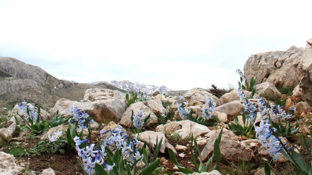 Kahramanmaraş’ın Afşin ilçesi, baharın gelişiyle birlikte doğanın en zarif uyanışlarından birine sahne oluyor. İlçenin sarp ve yüksek rakımlı bölgelerinde beyaz örtünün çekilmesiyle birlikte toprağı yararak çıkan kaya sümbülleri, izleyenlere adeta bir görsel şölen sunuyor. Mor ve mavi tonlarının eşsiz uyumunu sergileyen bu çiçekler, sadece bir bitki olmanın ötesinde bölgenin doğal mirasını temsil ediyor. 30 Mart itibarıyla dağların eteklerinden zirvelere kadar yayılan bu estetik manzara, doğa tutkunlarını ve manzara fotoğrafçılarını Afşin’in zorlu coğrafyasında buluşturuyor. Kayaların arasından süzülen bu ince gövdeli çiçekler, kıştan kalan kar tabakalarıyla muazzam bir tezat oluşturuyor.