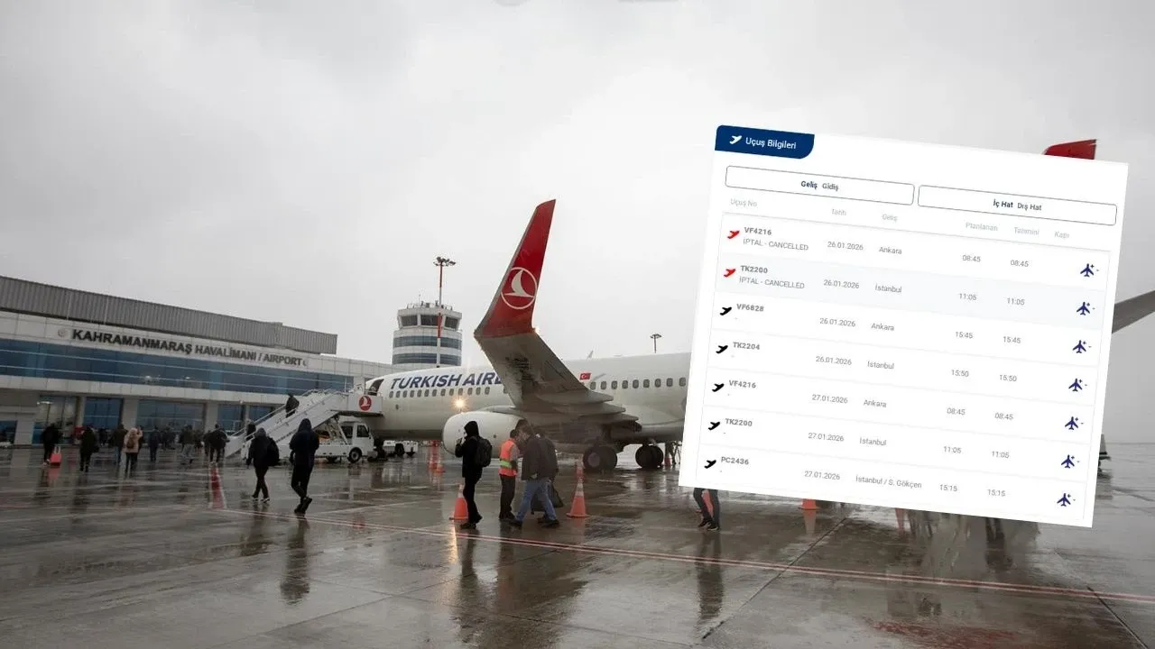 Kahramanmaraş Havalimanı’nda kış mevsiminin getirdiği olumsuz hava şartları, havayolu ulaşımını aksatmayı sürdürüyor. 26 Ocak 2026 sabahı gerçekleştirilmesi planlanan iki iç hat uçuşu, hava muhalefeti gerekçesiyle iptaller listesine girdi. Sabah saatlerinde etkisini gösteren sis ve kısıtlı görüş mesafesi, uçuş güvenliği açısından operasyonların durmasına yol açtı.