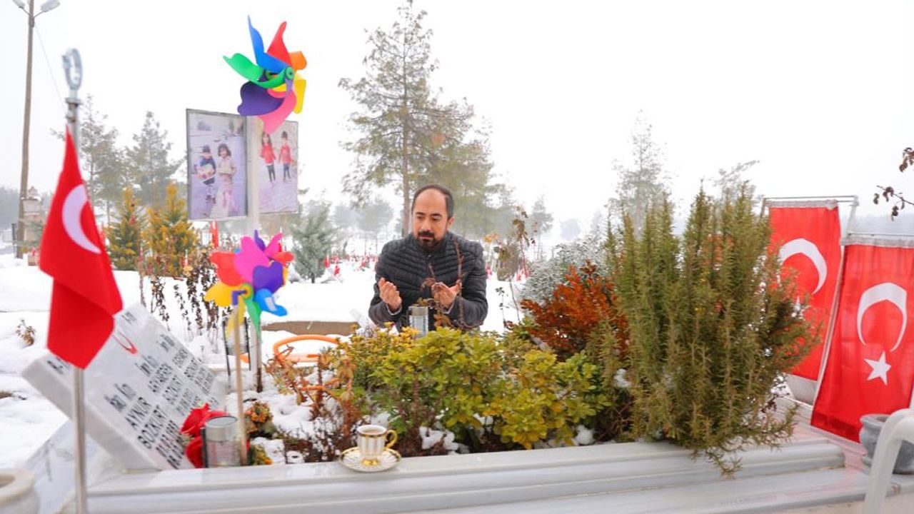 Onikişubat ilçesi Karamanlı Mahallesi'nde yaşayan 32 yaşındaki Emre Bozkurt, asrın felaketinde 7 saat süren yaşam mücadelesinin ardından enkazdan kurtuldu. Arama kurtarma ekipleri, 3 gün sonra eşi 30 yaşındaki Aynur ile çocukları 5 yaşındaki Arya Beren ve 3 yaşındaki Egemen’in cansız bedenlerine ulaştı. Hayatının en büyük kaybını yaşayan Bozkurt, o günden beri vaktinin büyük bir kısmını Kapıçam Şehir Mezarlığı’nda geçiriyor.