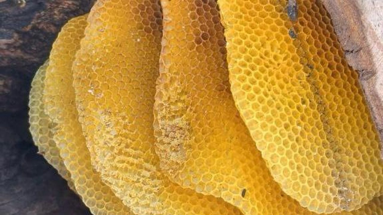 Bölgede her sabah hayvanlarını otlatmak için yola çıkan besici Halil İbrahim Karakuş, sedir ağacında kümelenen kovuktan yaklaşık 5 kilogramlık doğal petek bal buldu.