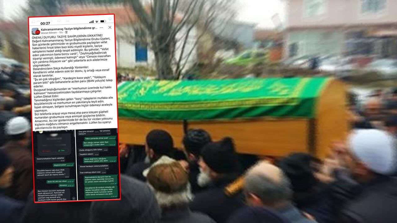 Taziye bilgilendirme gruplarında yapılan açıklamada, kendisini merhumun tanıdığı veya alacaklısı gibi tanıtan kişilerin ailelere ulaştığı ve çeşitli bahanelerle para istediği belirtildi. Vatandaşların bu tür taleplere karşı mutlaka teyit mekanizmasını işletmesi gerektiği ifade edildi.