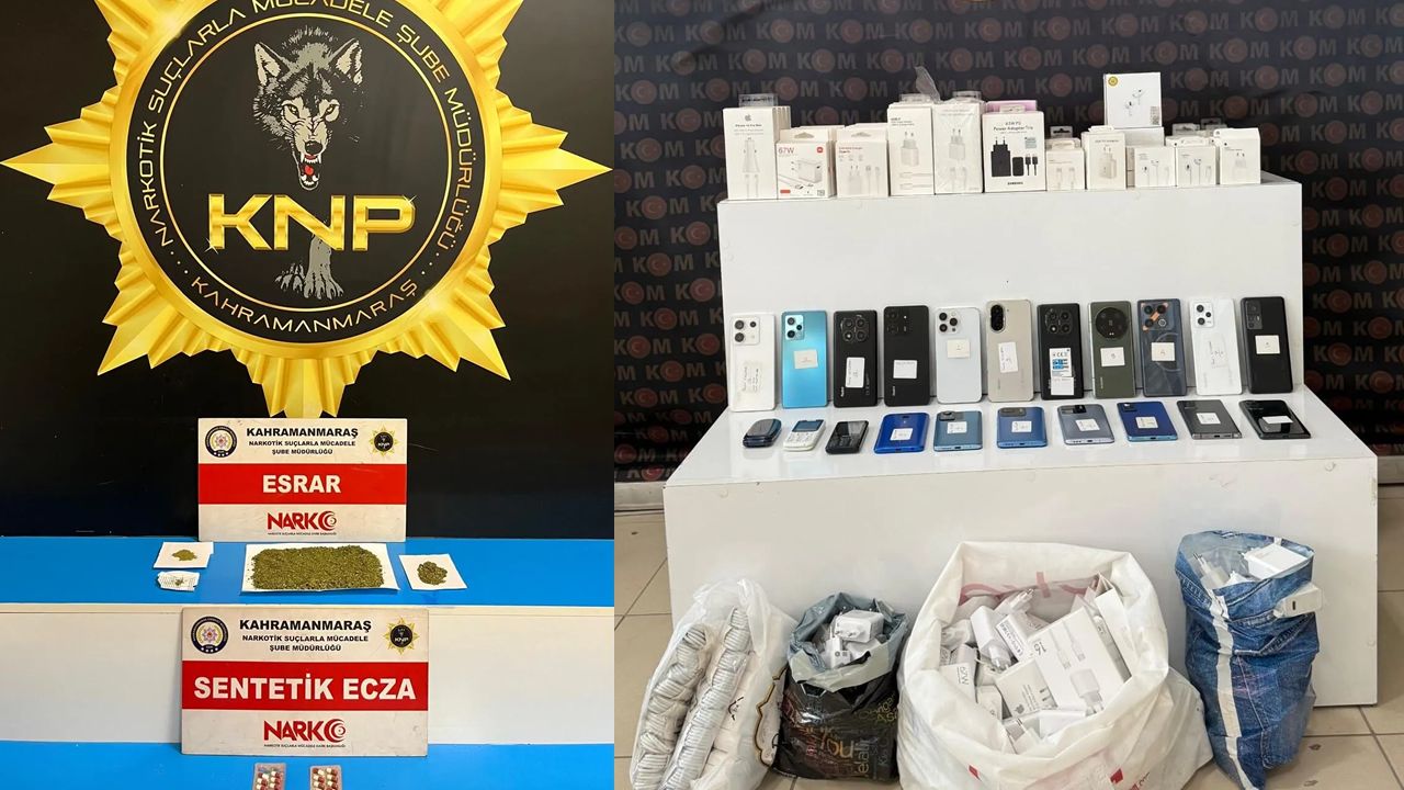 Kahramanmaraş İl Emniyet Müdürlüğü ekipleri, halkın huzur ve güvenliğini sağlamak amacıyla yürüttüğü çalışmalar kapsamında zehir tacirlerine ve kaçakçılara büyük bir darbe indirdi. Şehir merkezi ve Elbistan ilçesinde düzenlenen eş zamanlı operasyonlarda çok sayıda kaçak ürün ve uyuşturucu madde ele geçirildi.