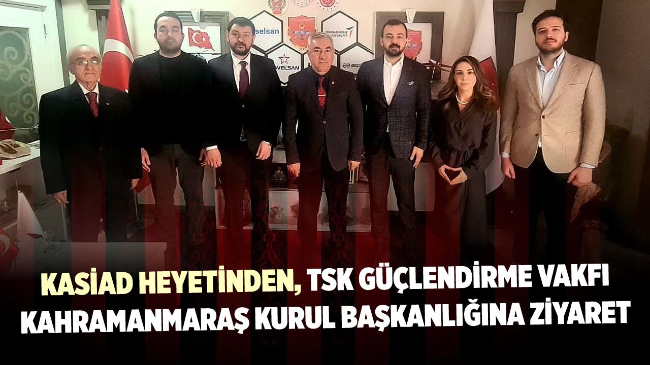 Kahramanmaraş Sanayici ve İş İnsanları Derneği (KASİAD) Yönetim Kurulu Başkanı İsmail Dinçer, beraberindeki geniş heyetle TSK Güçlendirme Vakfı Kahramanmaraş Kurul Başkanlığını ziyaret etti. Ziyarette Başkan Yardımcısı İsmail Kurtul, yönetim kurulu üyeleri Çağatay Emir Mahmuoğlu, İsmail Nohutlu, Kübra Şirikçi Tanrıverdi ve Genel Sekreter Ahmet Görgülü yer aldı. Heyeti, TSKGV Kahramanmaraş Kurul Başkanı Rüstem Özen ve Genel Sekreter Mustafa Baki Güçlü karşıladı.