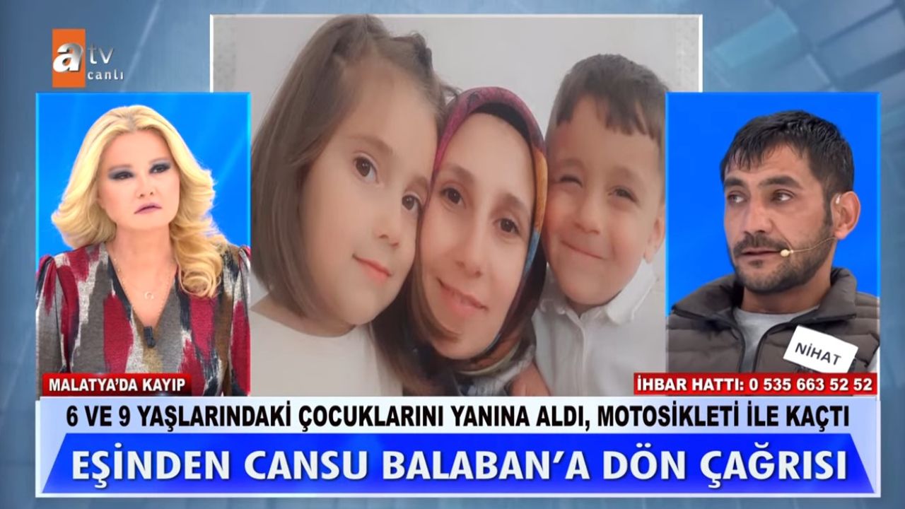 Türkiye'nin sevilen reality show programı Müge Anlı İle Tatlı Sert, yeni bir aile dramını ekranlara taşıyor. Malatya'da yaşayan Nihat Balaban, evi terk eden eşi Cansu Balaban ve 9 ve 6 yaşlarındaki çocuklarını bulmak için Müge Anlı'ya başvurdu.