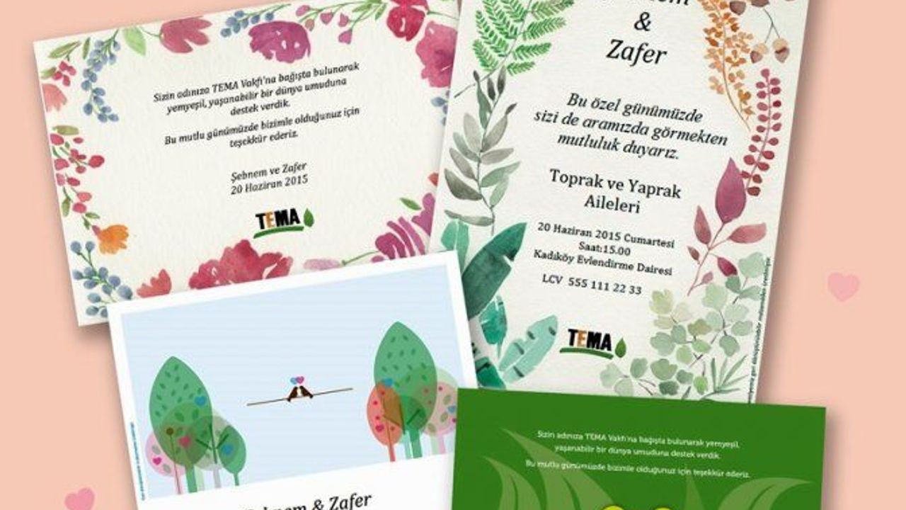 TEMA Vakfı, geri dönüştürülebilir malzemeden üretilmiş nikah ürünleri tasarladı. Nikah ürünleri, nikah şekeri yerine dağıtılabilecek nikah kartları ile davetiyelerden oluşuyor. Dünya evine adım atacak çiftler için özel olarak tasarlanan TEMA Vakfı nikah ürünlerinin Çiçekler, Yapraklar, Orman ve Kuşlar olmak üzere dört modeli bulunuyor. Yapraklar ve Çiçekler modelleri tasarımcı Bengisu Yayla tarafından TEMA Vakfı’na özel sulu boya illüstrasyon olarak hazırlandı. Kuşlar serisine ait nikah kartları aynı zamanda kitap ayracı olarak da kullanılabilecek şekilde tasarlandı. Nikah ürünlerinden elde edilen gelirle TEMA Vakfı'nın ağaçlandırma, doğal varlıkları koruma ve erozyonla mücadele faaliyetlerine katkı sağlanıyor.